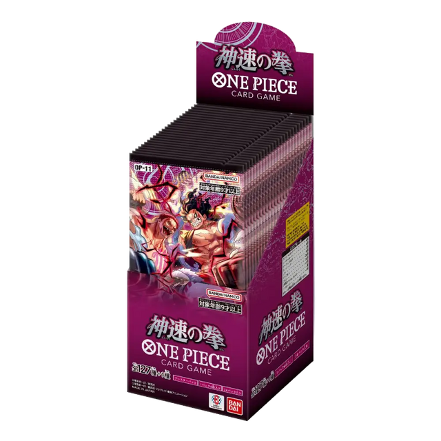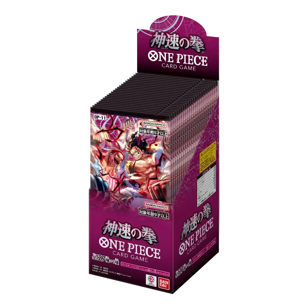 Unleash lightning-fast new strategies with OP-11: A Fist of Divine Speed in the original Japanese edition. This set brings fresh support for popular themes and introduces exciting new gameplay lines, making it a strong pick for both collectors and players who love Japanese print quality.